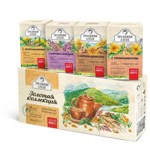 Подарочный набор чая золотая коллекция травяной 4×50г Традиции Алтая 92510