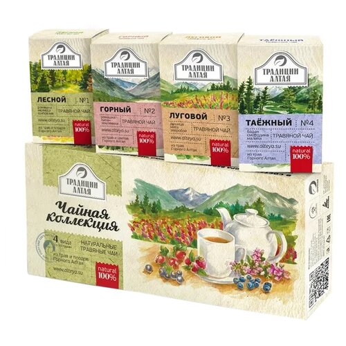 Набор чая из алтайских трав Чайная коллекция, 4 вида по 50 гр. Горный, Таежный, Лесной, Луговой