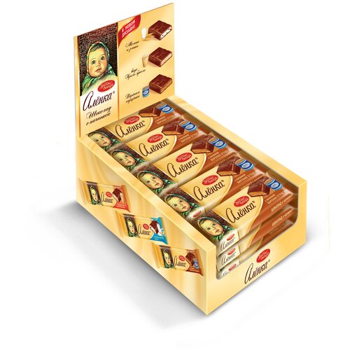 Батончик Алёнка с мягкой карамелью и орехом, шоубокс, карамель, лесной орех, 25 г, 32 уп.