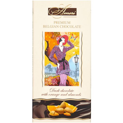 Шоколад Ameri горький 57% c миндалем и апельсином, 100 г
