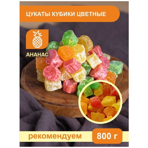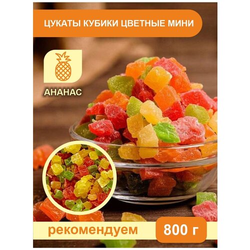 Цукаты ананаса (разноцветные кубики мини), 800 г