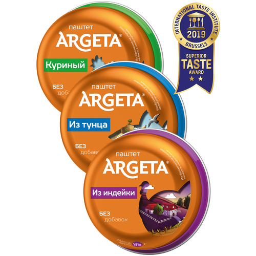 Паштеты ARGETA "Разнообразие вкусов" — куриный HALAL, из мяса индейки, из тунца (3 шт по 95 гр)