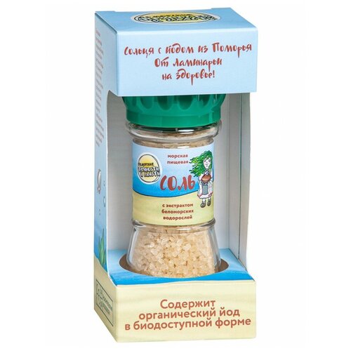 Соль морская пищевая с экстрактом беломорских водорослей, 80 г (коробка)