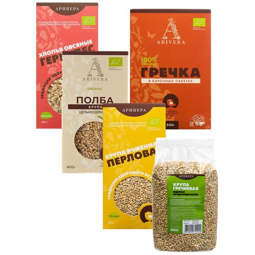 Аривера Набор№2 Гречка зеленая-1шт, гречка вп-1шт, полба-1шт, перловка-1шт, геркулес-1шт, 3,480 кг