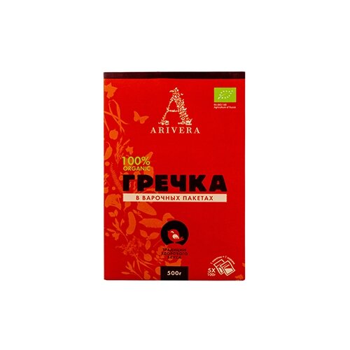 Крупа гречневая аривера ядрица быстроразваривающаяся (пропаренная) в варочных пакетах БИО 500 г, полимерная упаковка, картонная коробка