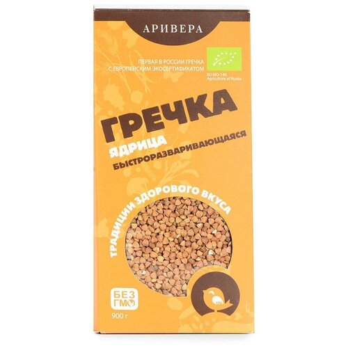 Крупа гречневая аривера ядрица быстроразваривающаяся (пропаренная)БИО 900 г, полимерная упаковка, картонная коробка