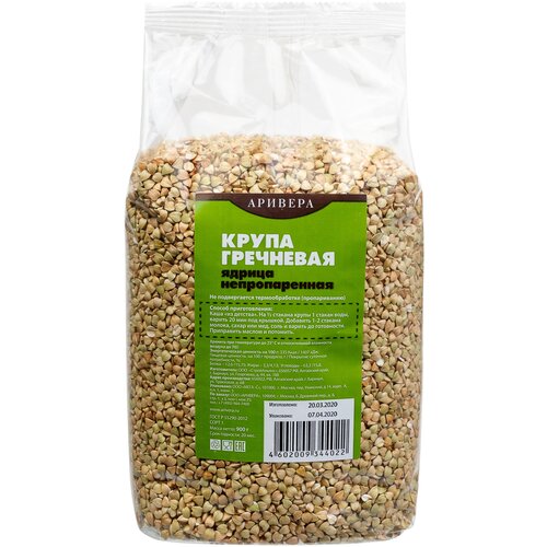 Крупа гречневая аривера ядрица (непропаренная) БИО 900 г, полимерная упаковка