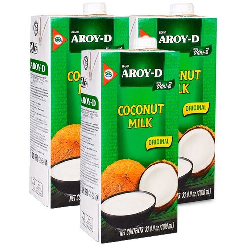Молоко кокосовое AROY-D, 3 упаковки Tetra Pak по 1000 мл.