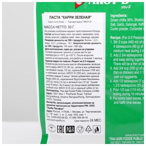 Паста карри (Curry paste) зеленая Aroy-D | Арой-Ди 400г