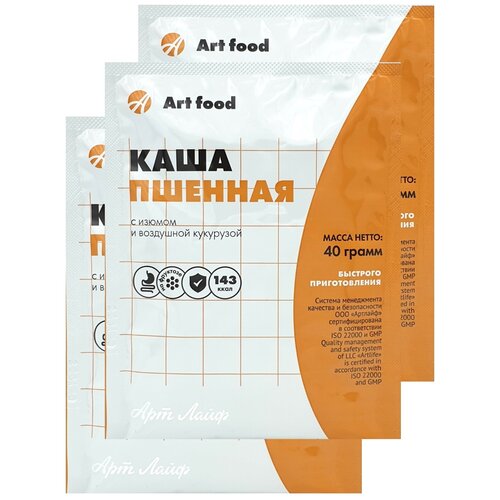 Каша Кукурузно-Пшенная с изюмом 3шт по 40г С отрубями и лизатами пропионовокислых бактерий Art Life