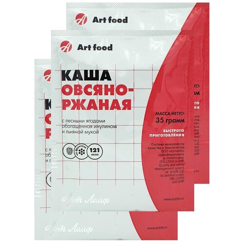 Каша овсяно-ржаная с лесными ягодами 3шт по 35г Обогащенная инулином и льняной мукой. На фруктозе. Art Life
