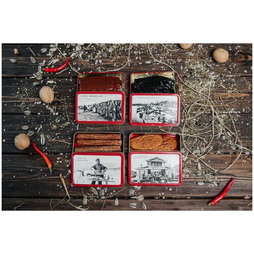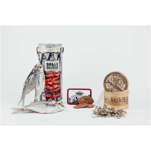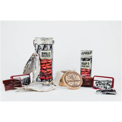 Подарочный набор "Астраханская вобла вяленая" "Снеток Новгородский" "Икра воблы Астраханская" "Икра воблы полоски" Икра воблы полоски (чёрная)"