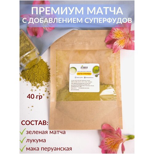 Матча Латте Суперфуд зеленый чай премиум с суперфудами, 40 гр