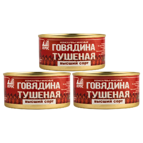 Говядина тушеная атрус Высший сорт, 3 шт. по 325 г