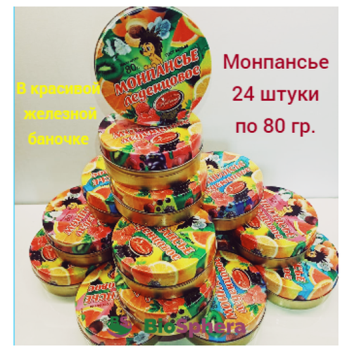 Монпансье карамель леденцовая 24 шт. по 80 гр. В красивой железной баночке. Азовчанка.