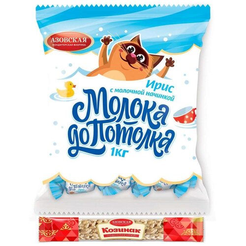 Ирис Азовская кондитерская фабрика, с молочной начинкой "Молока до Потолка" 1 кг + Козинак подсолнечный 50г