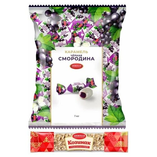Карамель с фруктовой начинкой Азовская кондитерская фабрика, со вкусом чёрной смородины 1кг. + козинак подсолнечный 50г