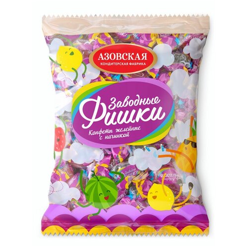 Конфеты Азовская кондитерская фабрика Заводные Фишки желейные с начинкой, 1 кг.