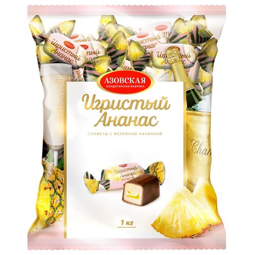 Конфеты Азовская кондитерская фабрика Игристый ананас желейные глазированные, 1 кг.