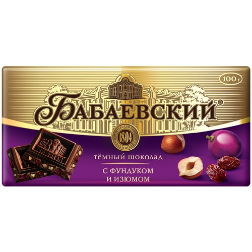Бабаевский темный шоколад с фундуком и изюмом, 16 шт по 100 г