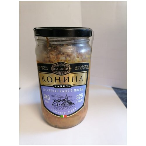 Гречневая каша с кониной Халяль Бабайъ, стеклянная банка, 325 г