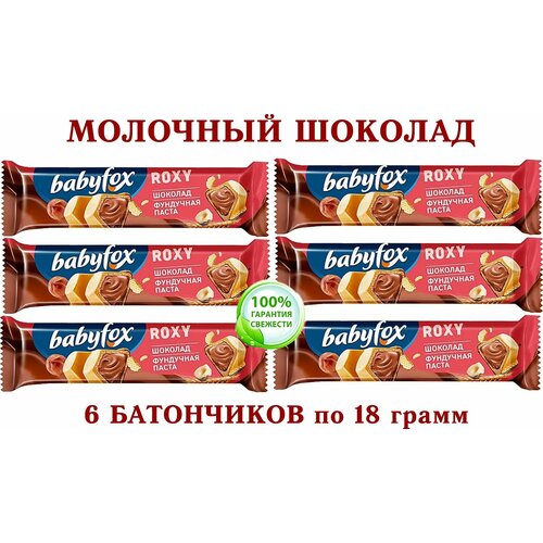 Вафельный батончик BabyFox ROXY в молочном шоколаде с шоколадно-ореховой начинкой на основе фундучной пасты с добавлением какао-6*18 гр.