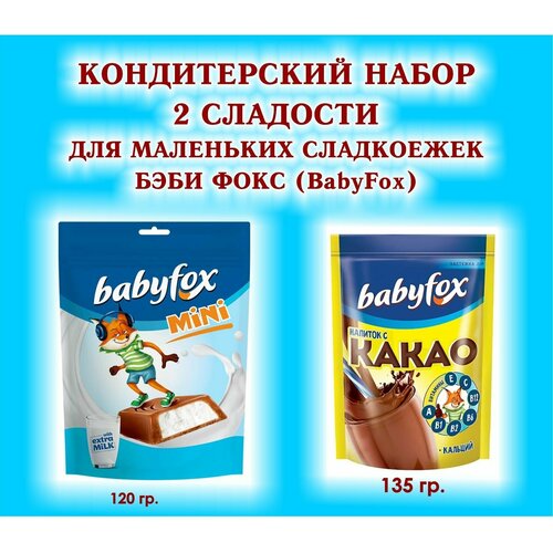 Набор Детских сладостей "BabyFox"- какао 1*135 гр.+Конфеты c молочной начинкой 1*120 гр.-подарок для маленьких сладкоежек