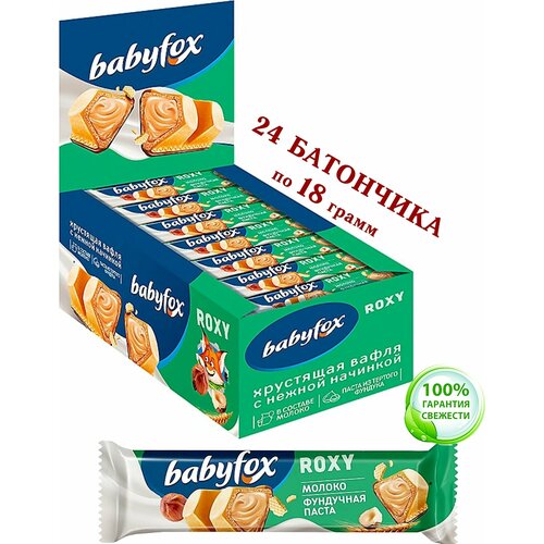 Вафельный батончик BabyFox "ROXY"в молочном шоколаде с молочно-ореховой начинкой на основе фундучной пасты-24 шт. по 18 гр.