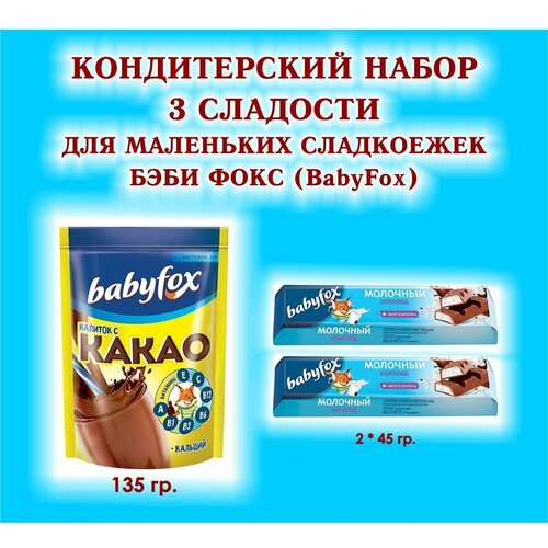Детский Набор сладостей "BabyFox"- Шоколад молочный 2*90 гр.+какао 1*135 гр.-подарок для маленьких сладкоежек