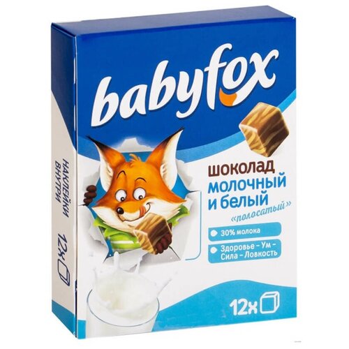 Шоколад babyfox детский полос.Молочный Белый 90г/6шт.