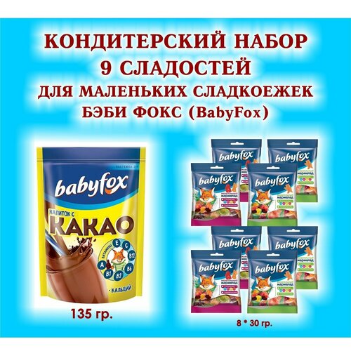 Набор сладостей "BabyFox"-Мармелад жевательный 8*30 гр.+какао 1*135 гр.-подарок для маленьких сладкоежек