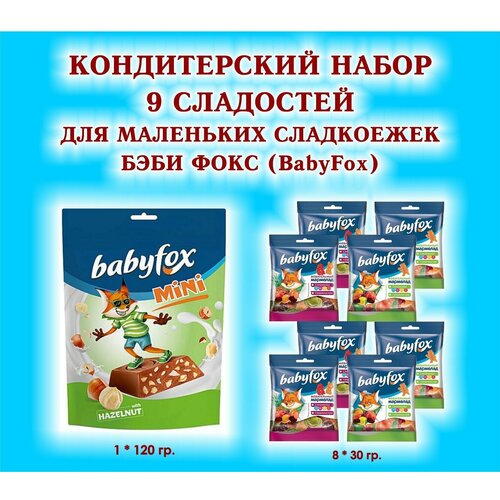 Набор"BabyFox"- Шоколад молочный 2*90 гр.+ Мармелад жевательный 4*70 гр.+Конфеты с фундуком 1*120 гр.-7 сладостей для маленьких сладкоежек