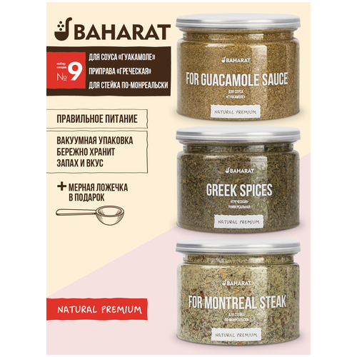 Набор из 3-х приправ BAHARAT приправа для соуса гуакамоле 160 гр, греческая универсальная 110 гр, для стейка по-монреальски 150 гр, специя и приправа
