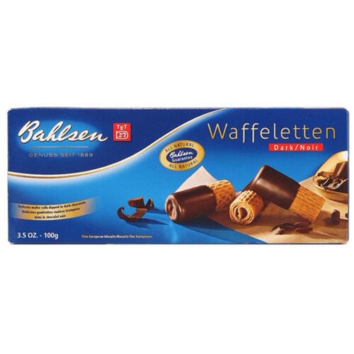 Вафли Bahlsen Waffeletten Dark Вафельные трубочки, наполовину покрытые тёмным шоколадом, 100г