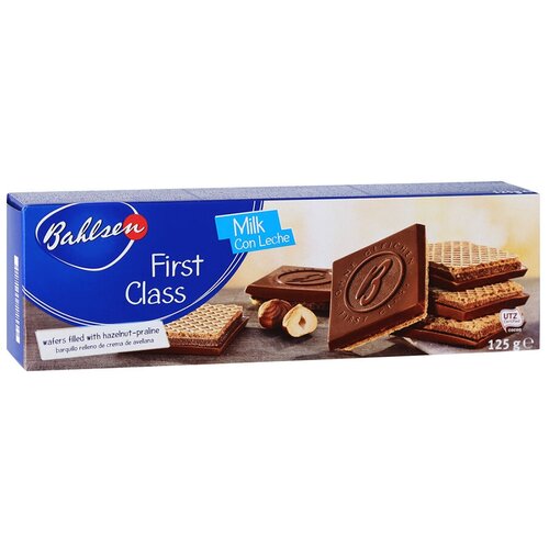 Вафли Bahlsen First Class Milk хрустящие с молочным шоколадом с начинкой из нежного орехового крема, 125г
