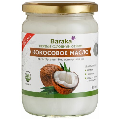 Кокосовое масло нерафинированное вирджин органик Барака 200 мл