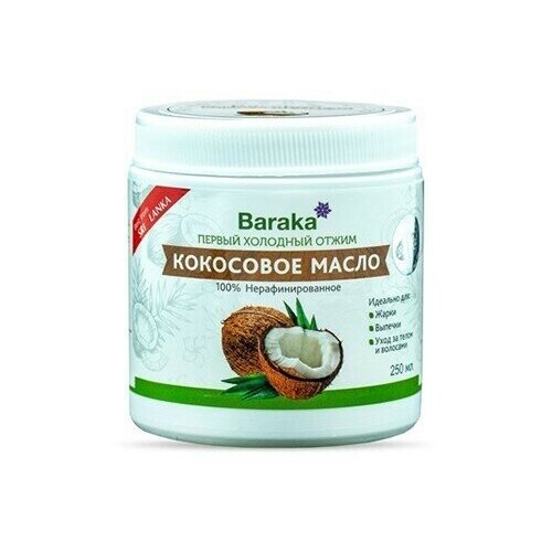 Масло кокосовое "Virgin" Baraka 250 мл. (100% масло холодного отжима, пищевое, нерафинированное)