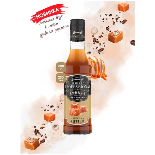 Сироп Barinoff Соленая карамель (для кофе, коктейлей, десертов, лимонада и мороженого), 250 мл/0,25л