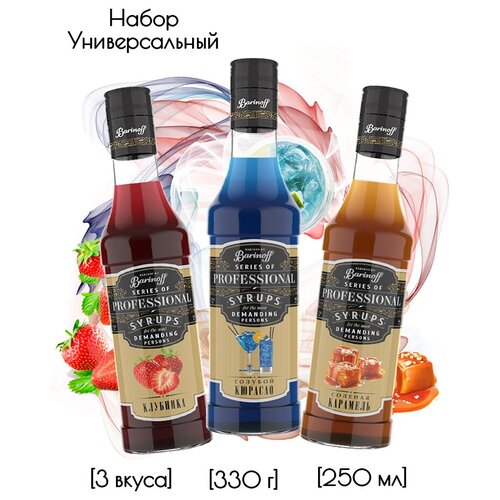Набор сиропов Barinoff для кофе и коктейлей Голубой Кюрасао, Клубника, Соленая Карамель (3 шт по 330 г)