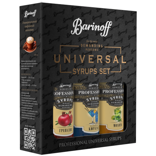 Набор сиропов Barinoff для кофе и чая Амаретто, Айриш крим, Шоколад (3 шт по 330 г /250 мл)