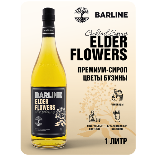 Сироп Barline Цветы Бузины (Elder Flowers), 1 л, для кофе, чая, коктейлей и десертов, ПЭТ