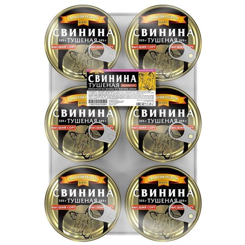 Барс Свинина тушеная высший сорт "Золотой резерв", ГОСТ, 6 банок по 325 г
