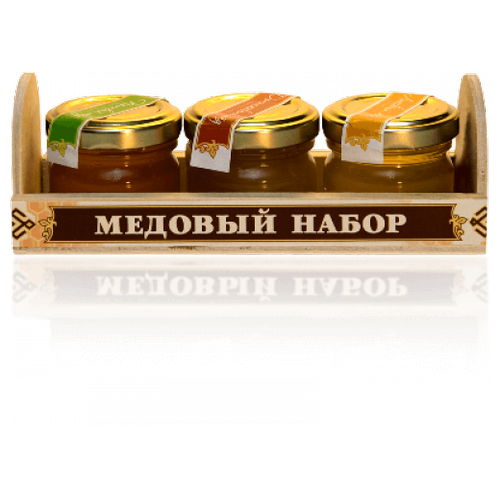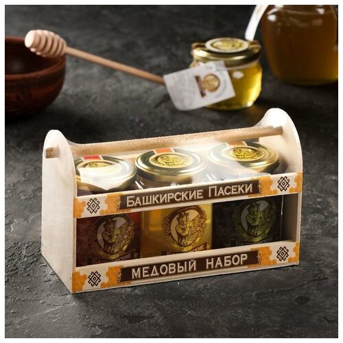 Подарочный набор С мёдом «ларец» "башкирские пасеки +" 3*150 гр.