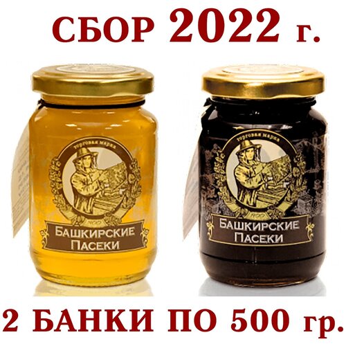 МЁД цветочный+гречишный натуральный «ПАСЕКИ-500» "башкирские пасеки +" сбор 2021 год розлив 2022 год 2 * 500 гр.