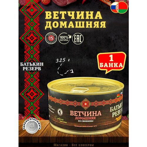 Ветчина домашняя из свинины Батькин резерв, 1 шт по 325 г