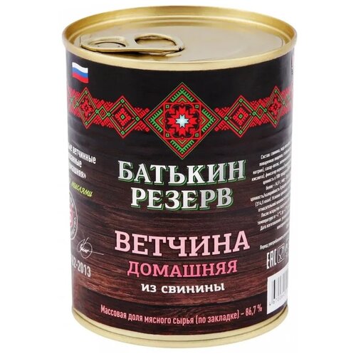 Ветчина домашняя из свинины Батькин резерв 350 гр высший сорт гост Р 55762-2013 с ключом