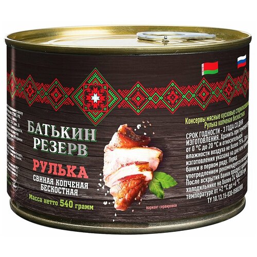 Рулька Батькин Резерв копченая бескостная кусковая высший сорт 540 гр с ключом