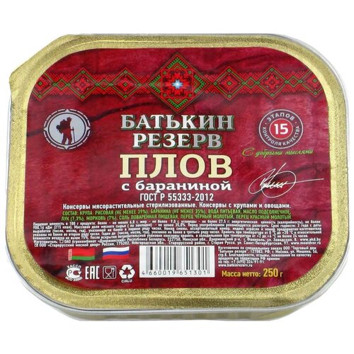 Плов с бараниной Батькин резерв 250 гр ламистер гост Р55333-2012