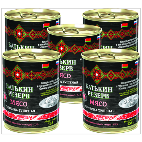 Свинина тушеная экстра, Батькин резерв, ГОСТ, 5 шт. по 338 г
