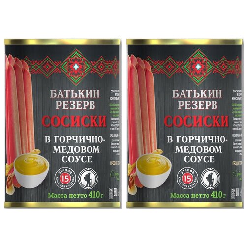 Сосиски из мяса Батькин Резерв консервированные в горчично-медовом соусе 2 штуки по 410 гр с ключом